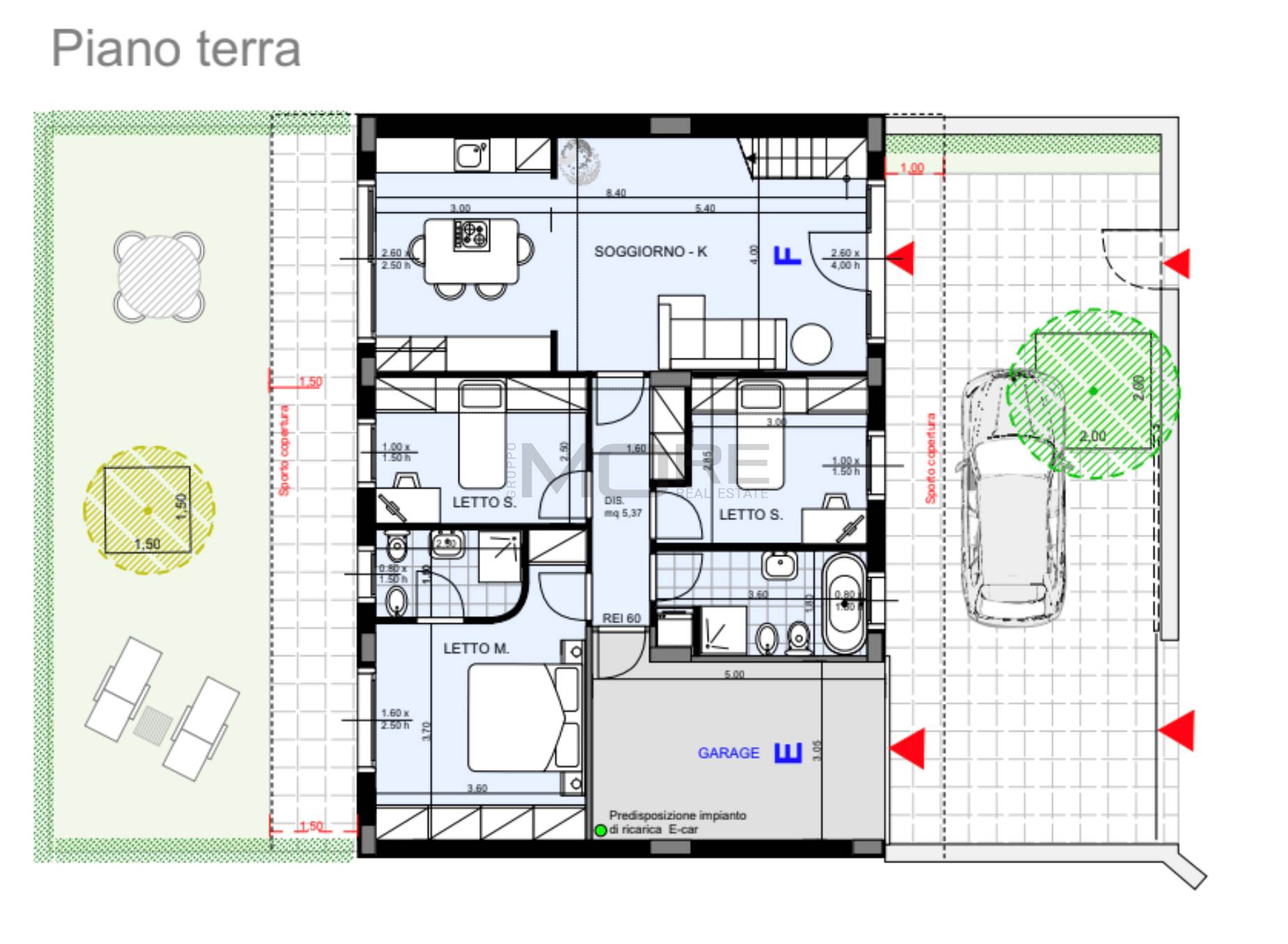 Immobile dotato di ingresso indipendente, giardino privato, terrazzo, garage e posto auto interno.