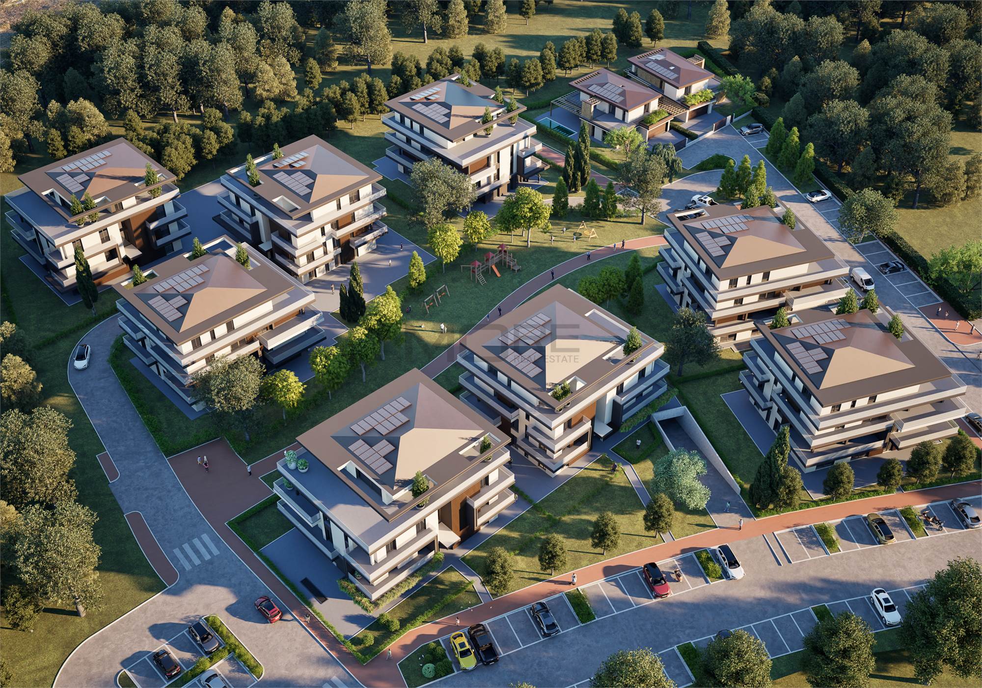Il capitolato prevede finiture di pregio tutte personalizzabili, pavimenti in ceramica grandi formati e parquet, rubinetterie e sanitari di design, riscaldamento in pompa di calore a pavimento, aria condizionata, impianto per il ricircolo dell'aria meccanizzato puntuale, pannelli fotovoltaici, addolcitore acque e predisposizione per antifurto.