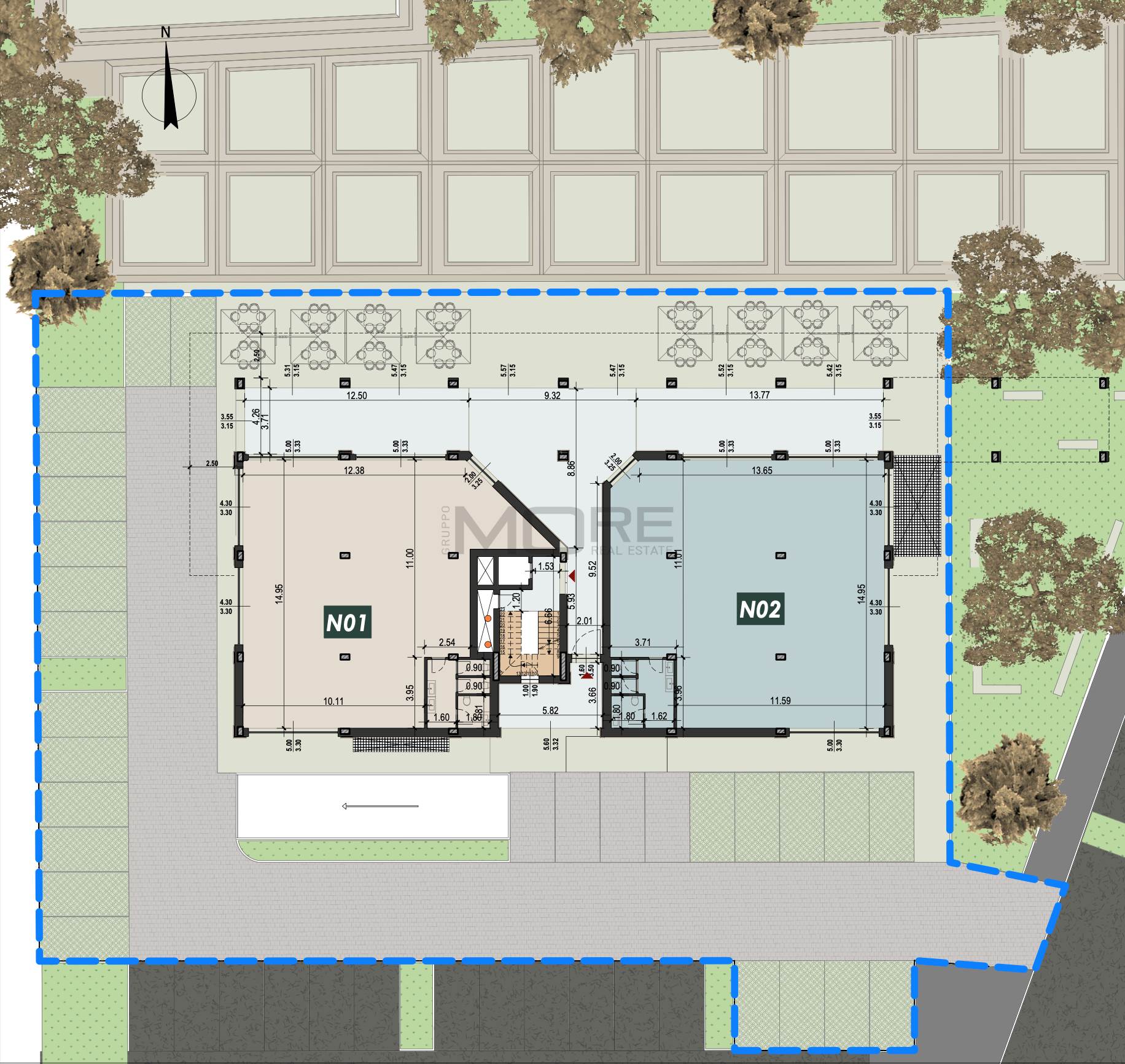 VD860-UMI2(N01). Nostra esclusiva, Casinalbo, Borgo San Luigi - Ex Salumificio Maletti, in angolo verde comodo a tutti i servizi prossima realizzazione di comparto residenziale (Classe Energetica A4 - NZEB) composto da nr. 9 palazzine e due ville indipendenti. Al piano terra della palazzina UMI2A vendesi negozio "N01" di 248 mq. con ampie vetrate e affaccio su piazza.