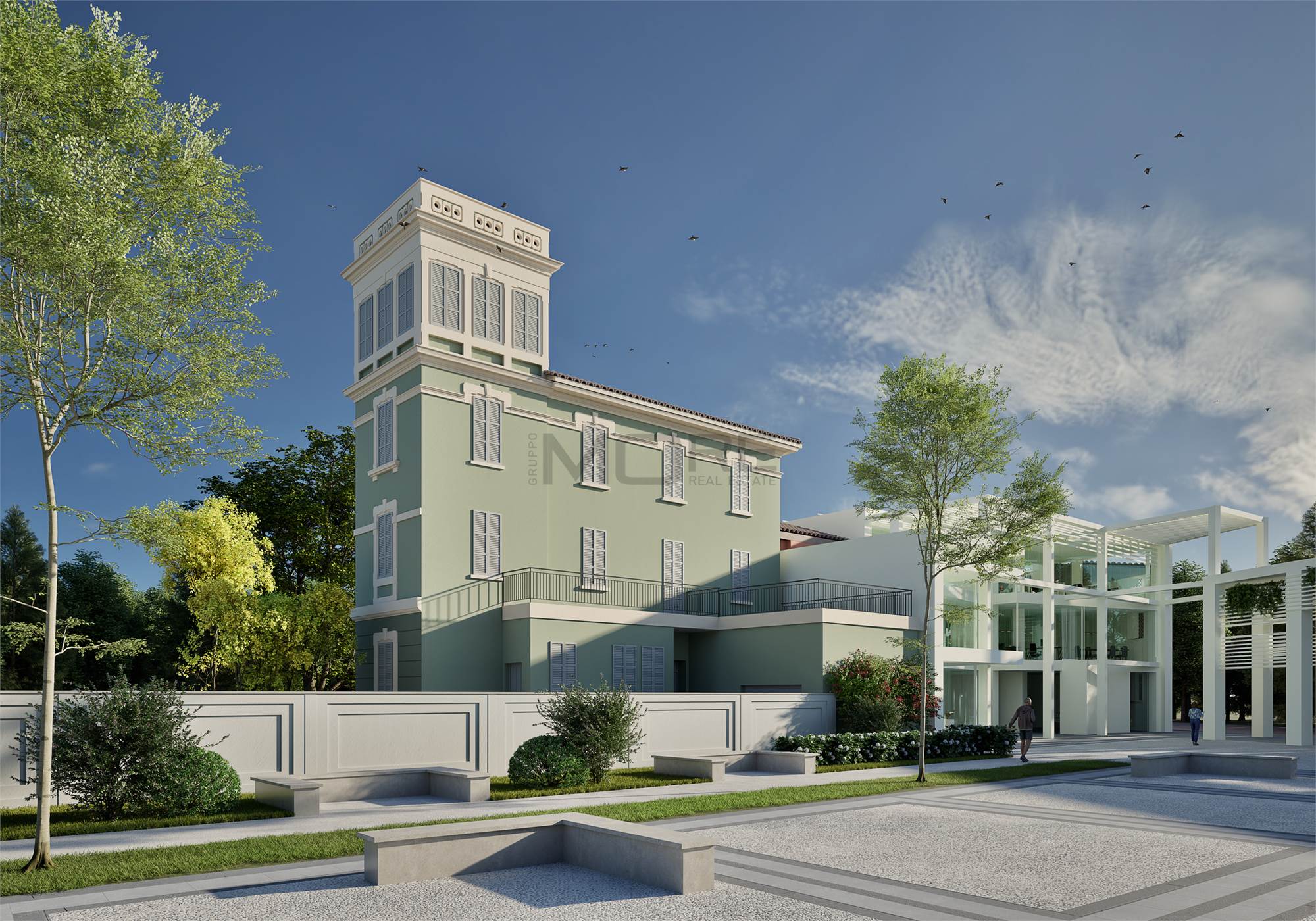 MO860E-VM2. Nostra esclusiva, Casinalbo, Borgo San Luigi - Ex Salumificio Maletti, in angolo verde comodo a tutti i servizi prossima realizzazione di comparto residenziale (Classe Energetica A4 - NZEB) composto da nr. 9 palazzine e due ville indipendenti. All'interno della storica Villa Maletti, (composta da sole tre unità abitative) in fase di integrale riqualificazione vendesi app.to di 157 mq. comm. ubicato al piano primo di due con ascensore.