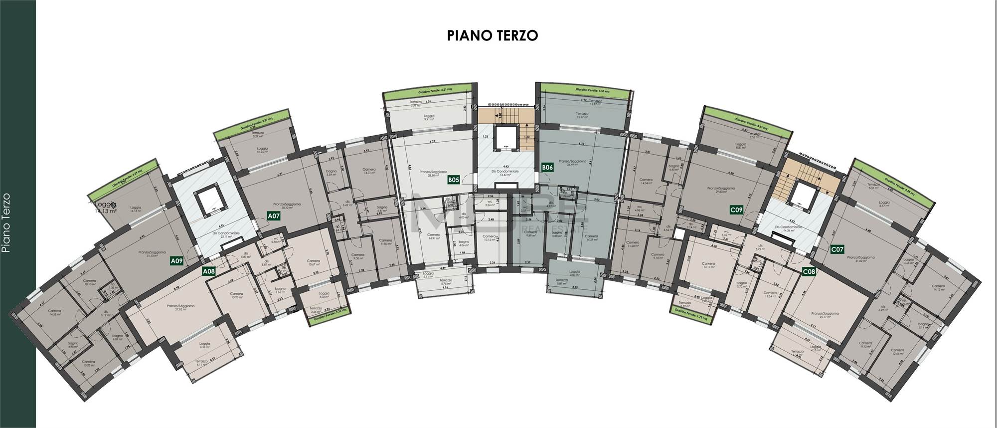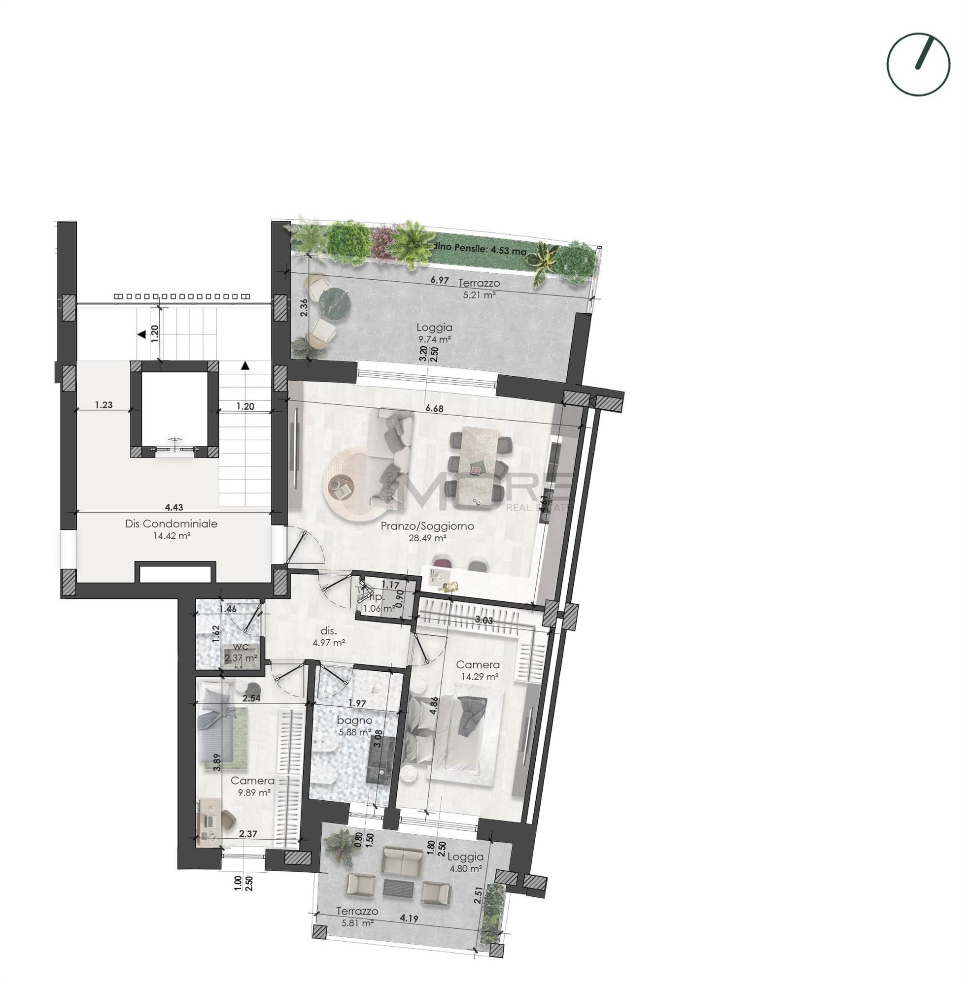 MO867B_B6 Nostra esclusiva, Via del Mercato, all'interno del nuovo comparto Ex Mercato Bestiame, nuova realizzazione di palazzina (Classe Energetica A4-NZEB) vendesi attico "B6" al piano terzo ed ultimo con ascensore, di 100 mq., due logge coperte e giardino pensile.