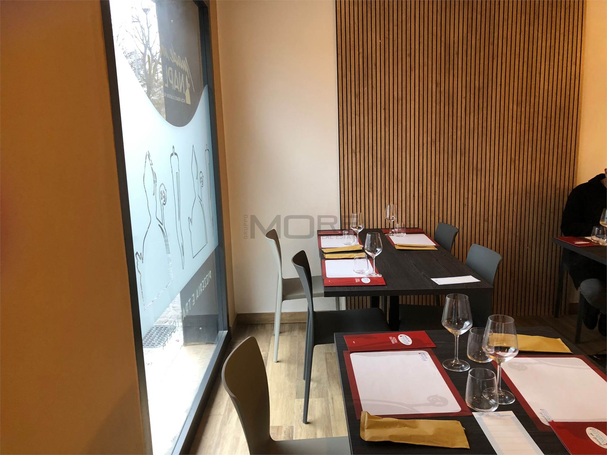 Ampio salone open space con circa 40 posti a sedere, antibagno e bagno clienti. Ampia cucina con canna fumaria magazzino e bagno dipendenti. Completa la proprietà una cantina di pertinenza ed una zona lavanderia comune.