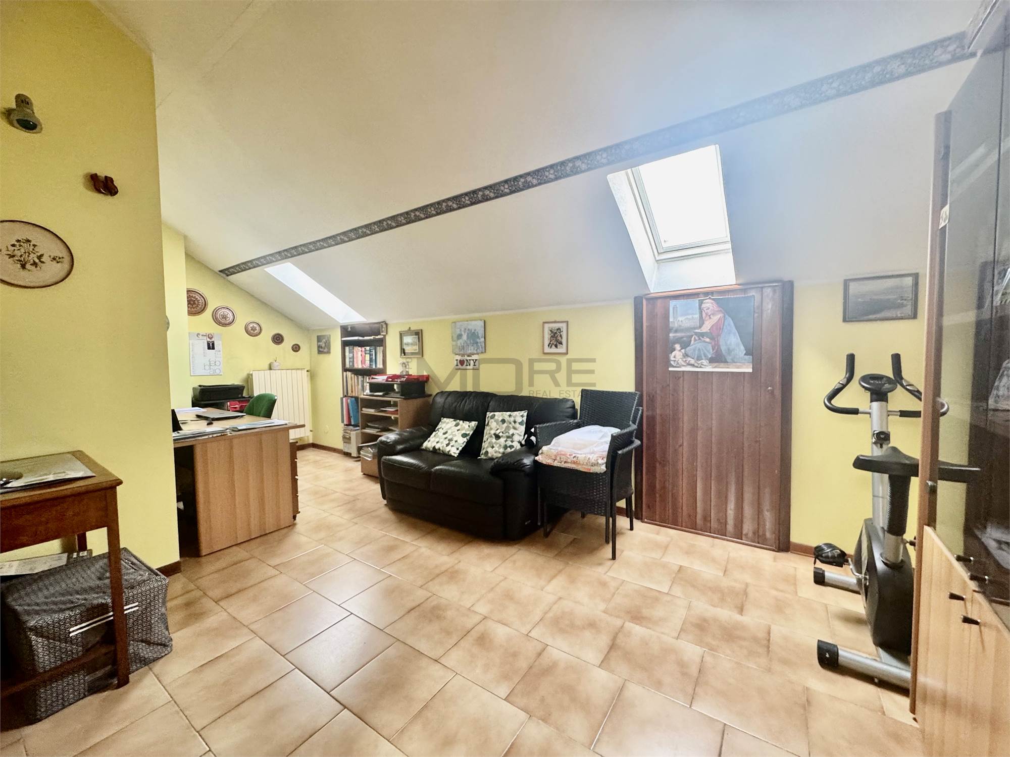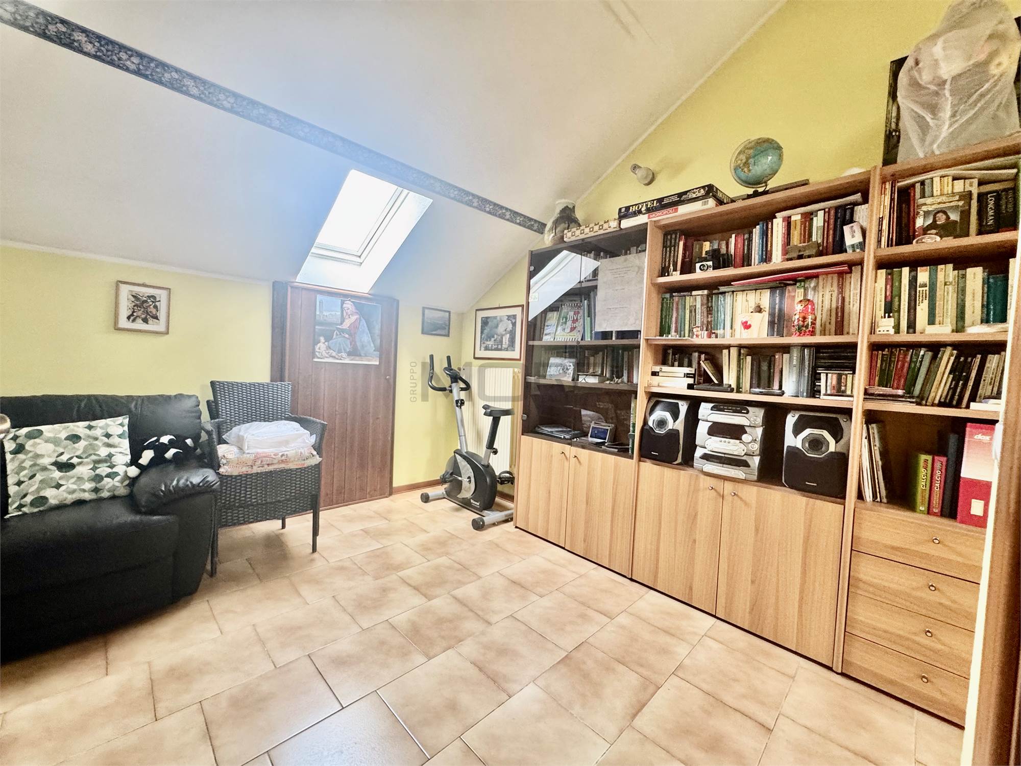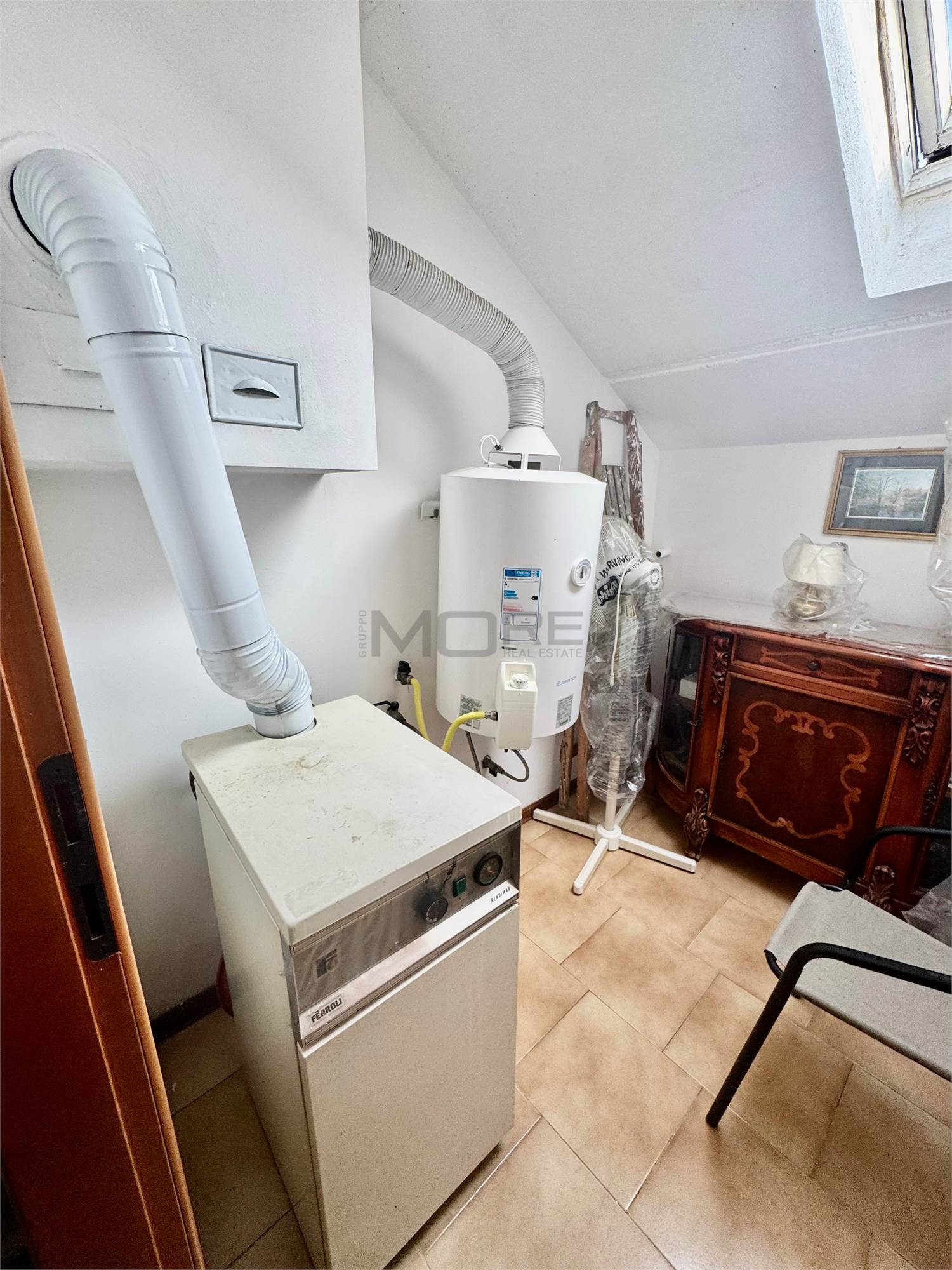 Al secondo piano ampia zona open space mansardata con lavanderia.
