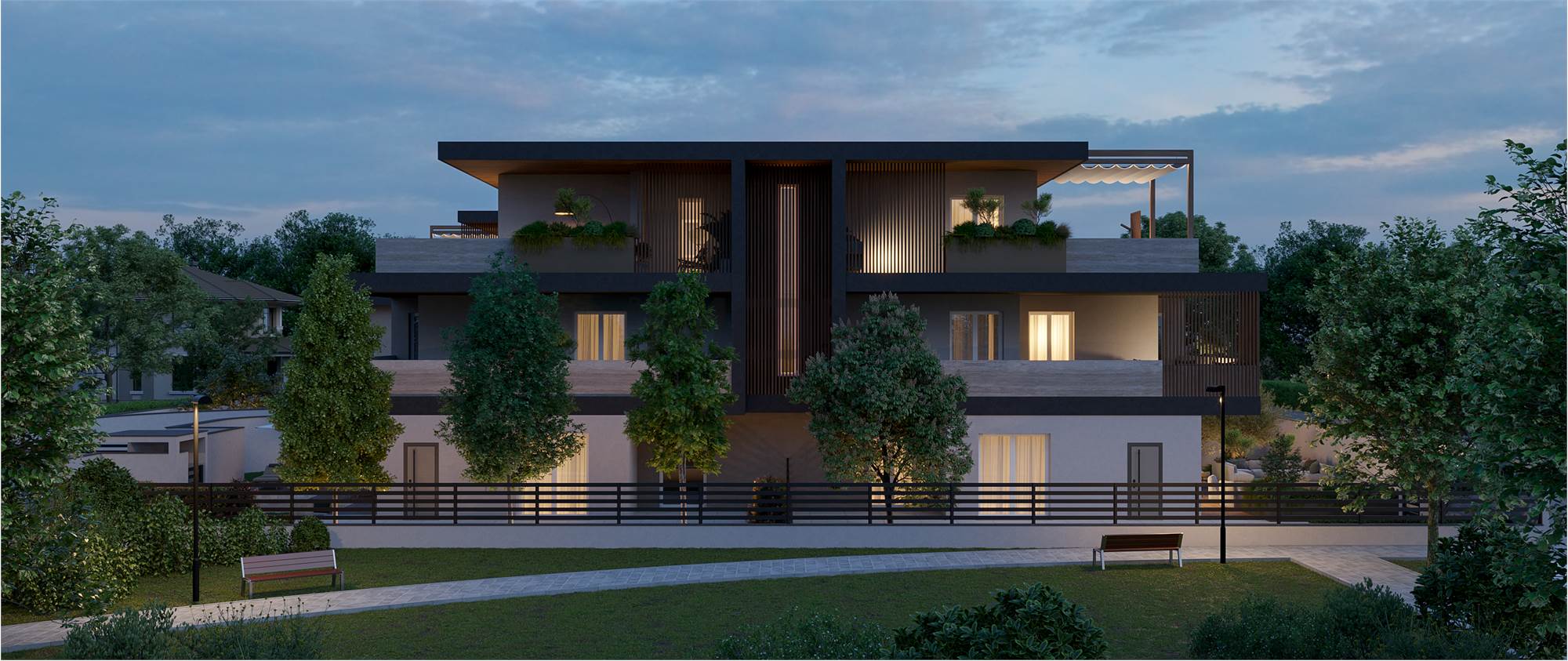 Prestigioso intervento immobiliare situato in zona verde a pochi passi dal Parco Rio dei Gamberi e a pochi minuti dal centro di Castelnuovo che consiste nella realizzazione di due edifici con 5 lussuosi appartamenti ciascuno.