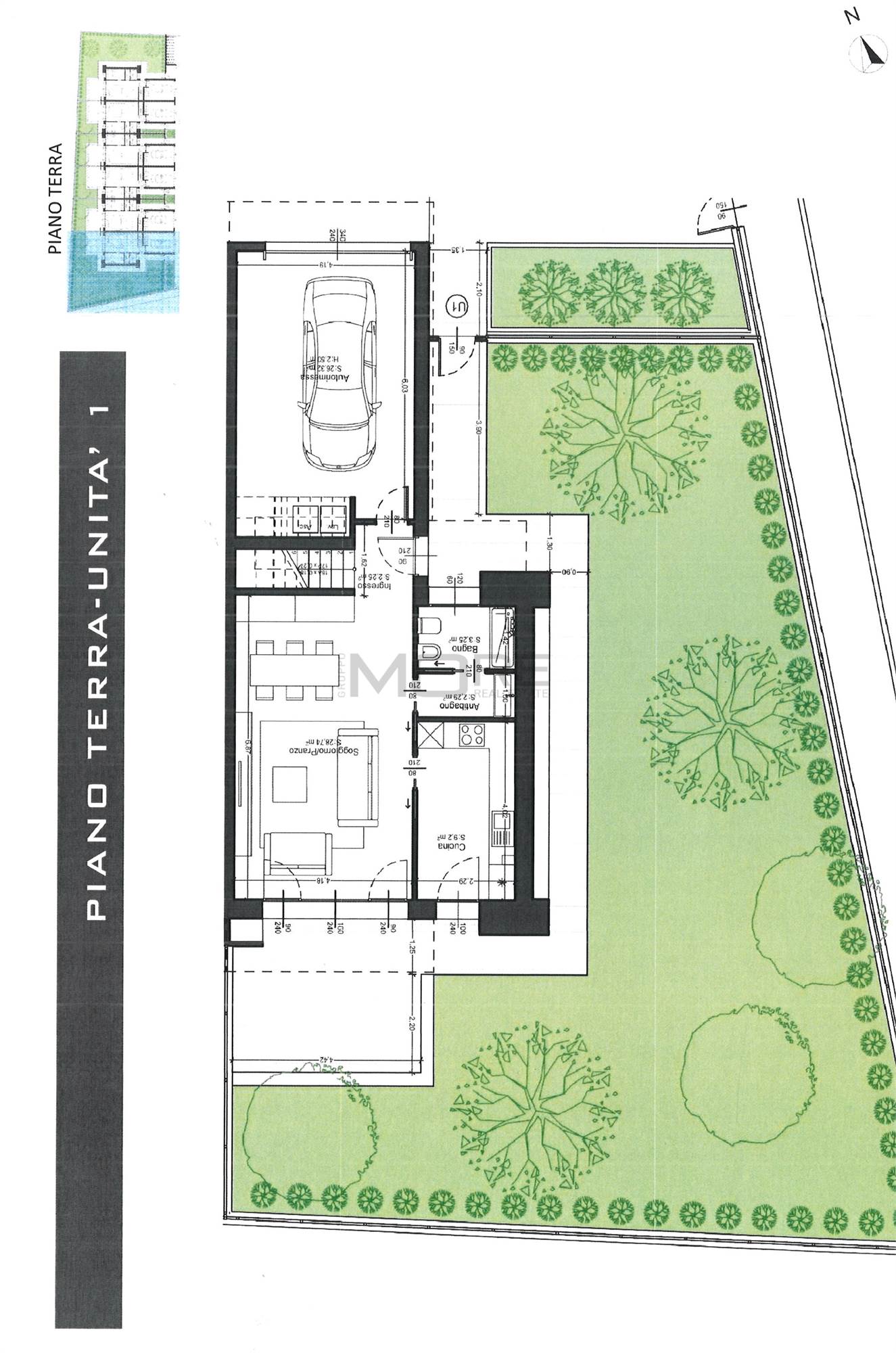 P.T. Garage doppio, giardino esclusivo e posto auto. Ingresso privato salone, cucina (o open space), antibagno, bagno e lavanderia;