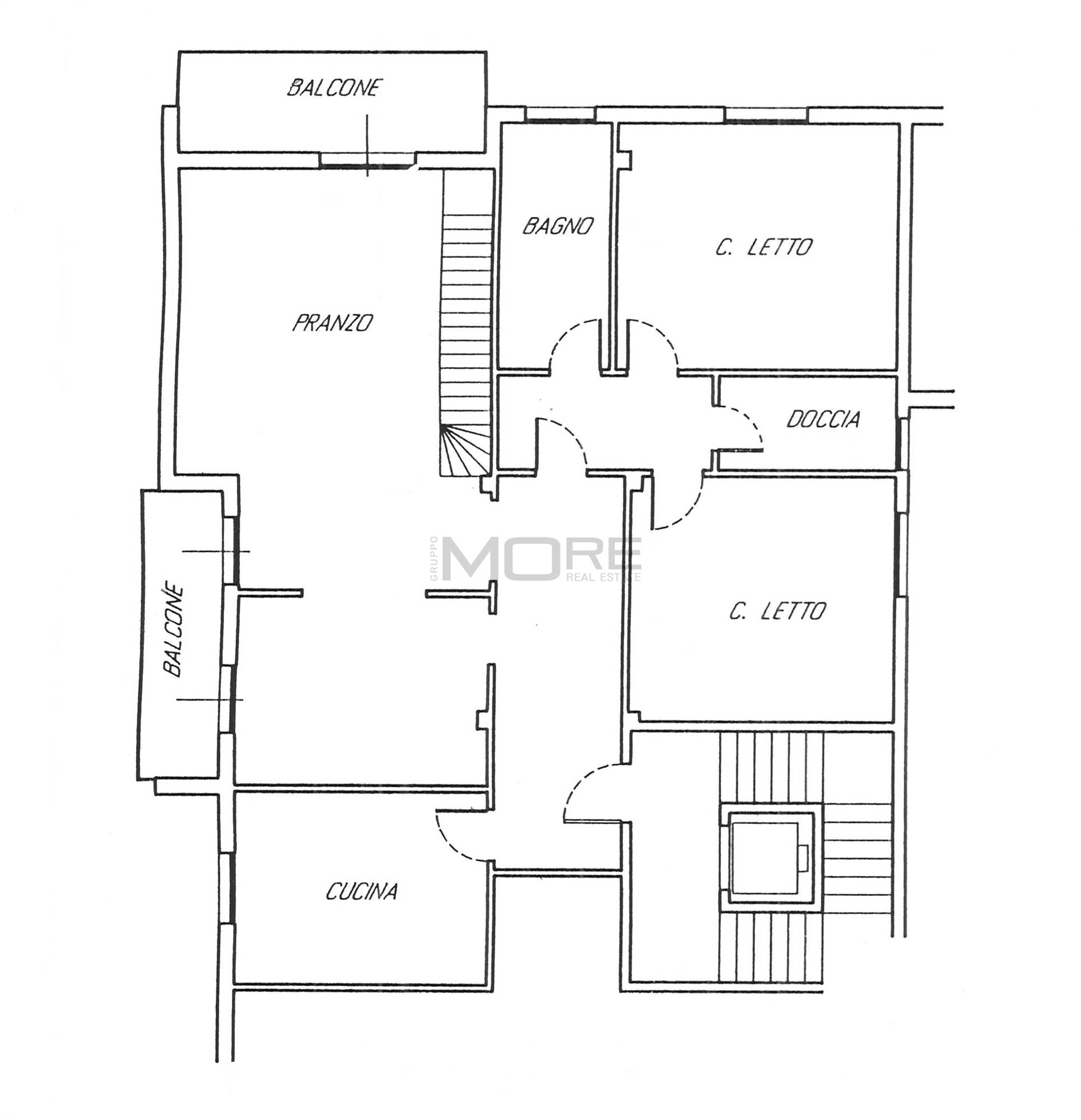 In elegante condominio di 4 piani con ascensore proponiamo appartamento ultimo piano composto da ingresso, salone, cucina abitabile, due balconi, ingresso notte, due camere matrimoniali, due bagni finestrati oltre a scala interna che porta in mansarda composta da due vani più lavanderia. La mansarda ha accesso anche dal vano scale