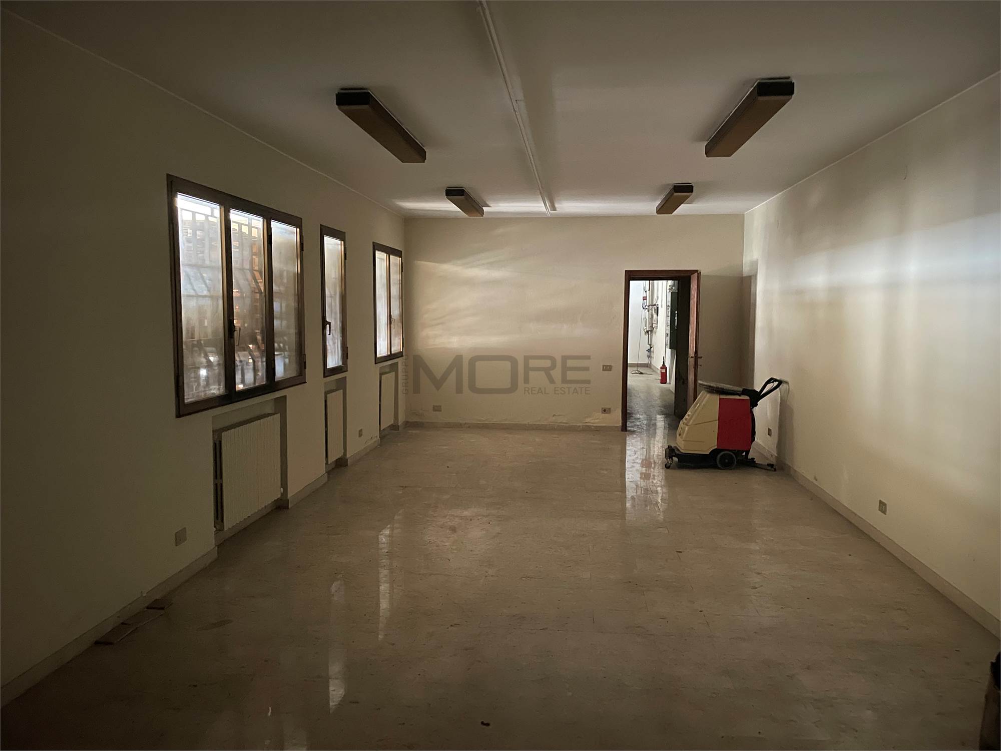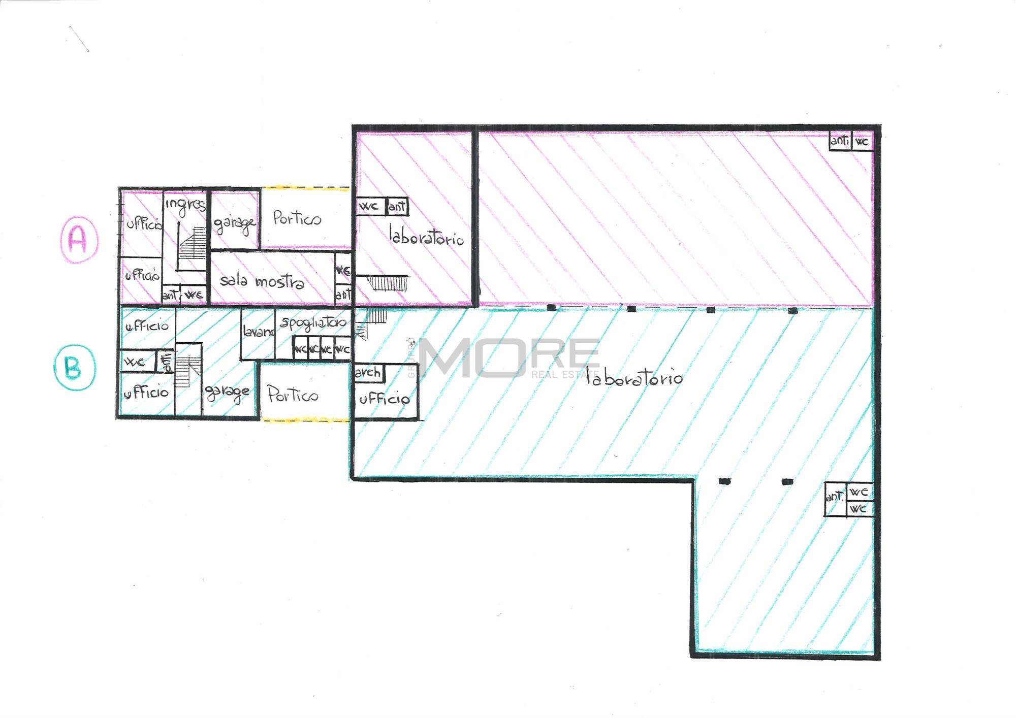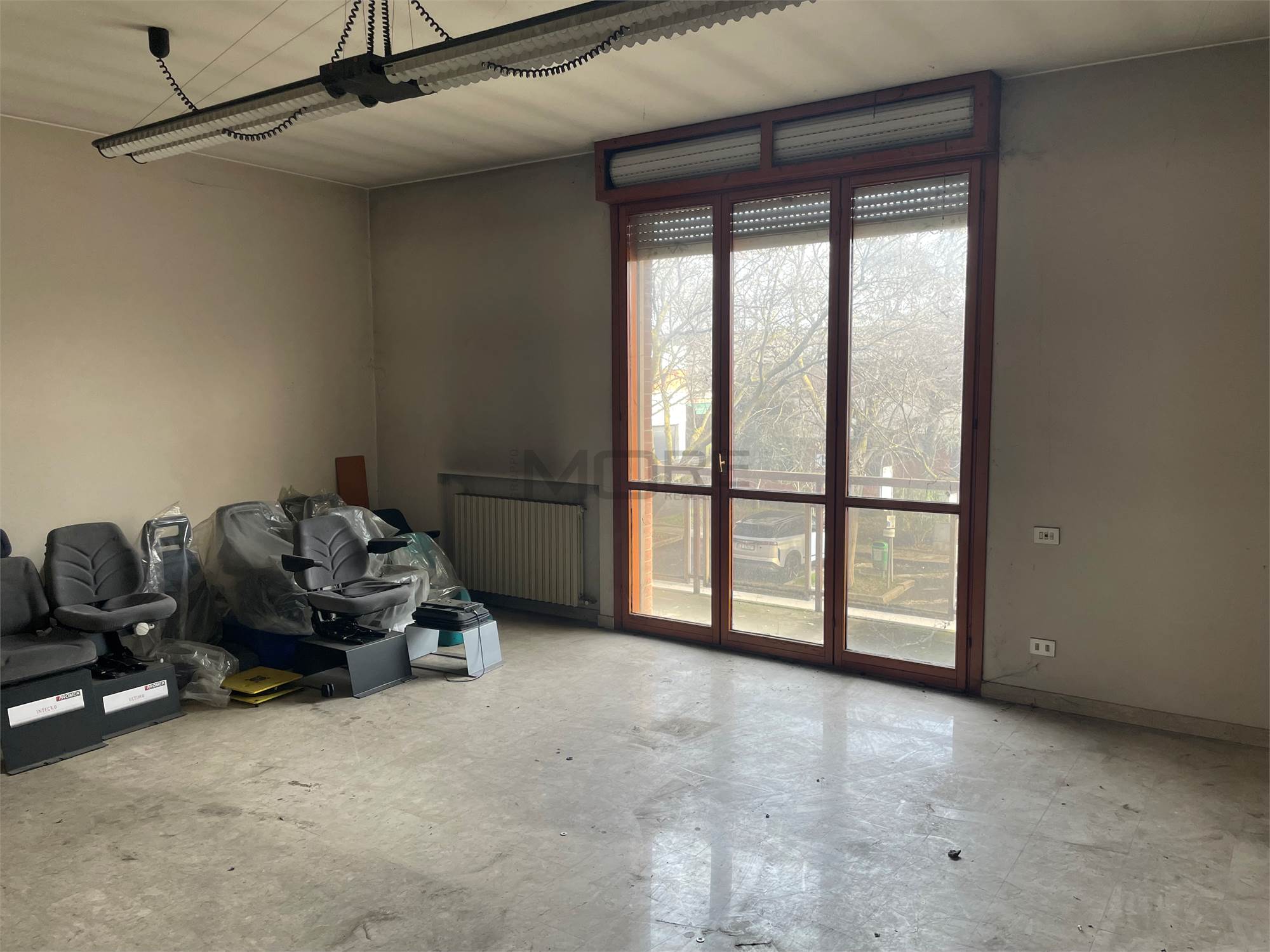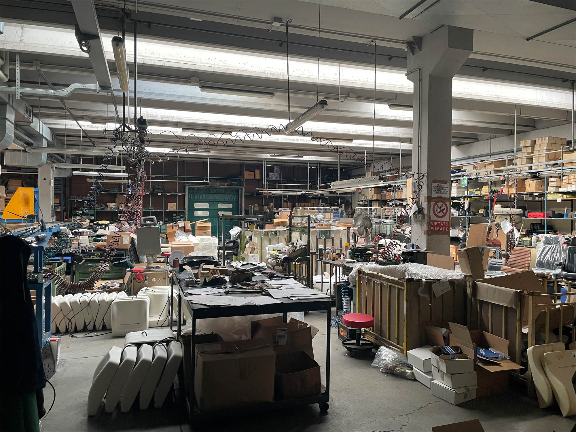 Proponiamo in vendita una porzione di fabbricato di circa 1025 mq. disposta su P.T. e P.1. attualmente libera, costituita da un capannone/laboratorio, locali ad uso uffici, servizi, sala mostra, un appartamento di mq. 150, un garage oltre ad area cortiliva.