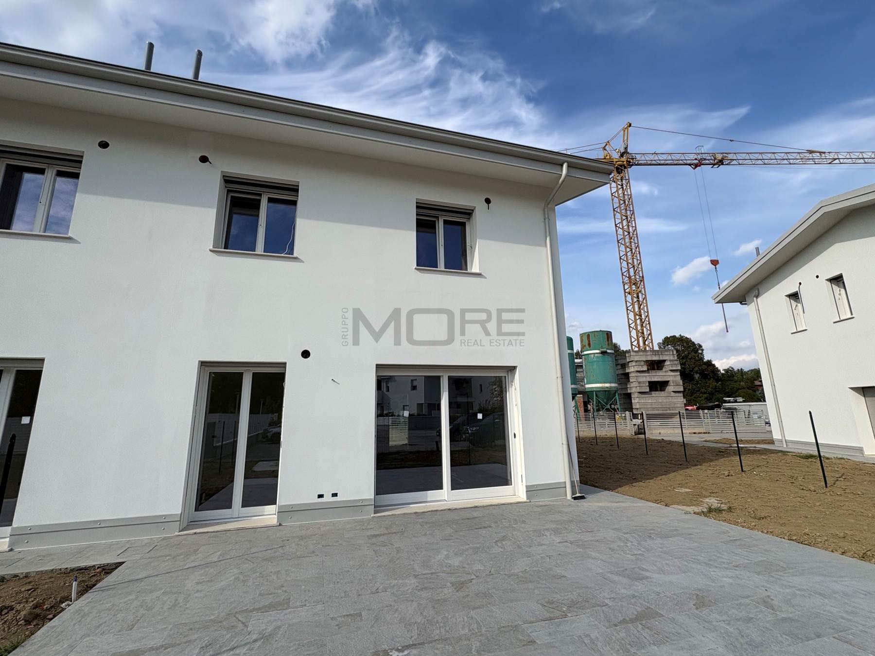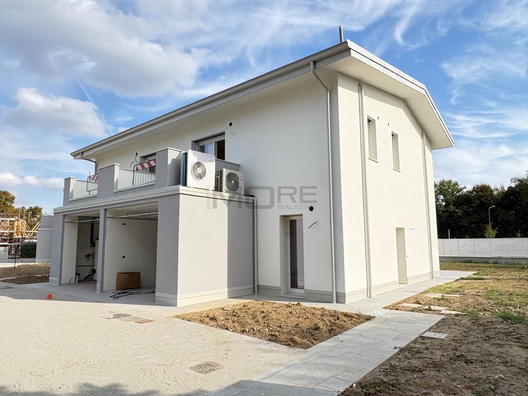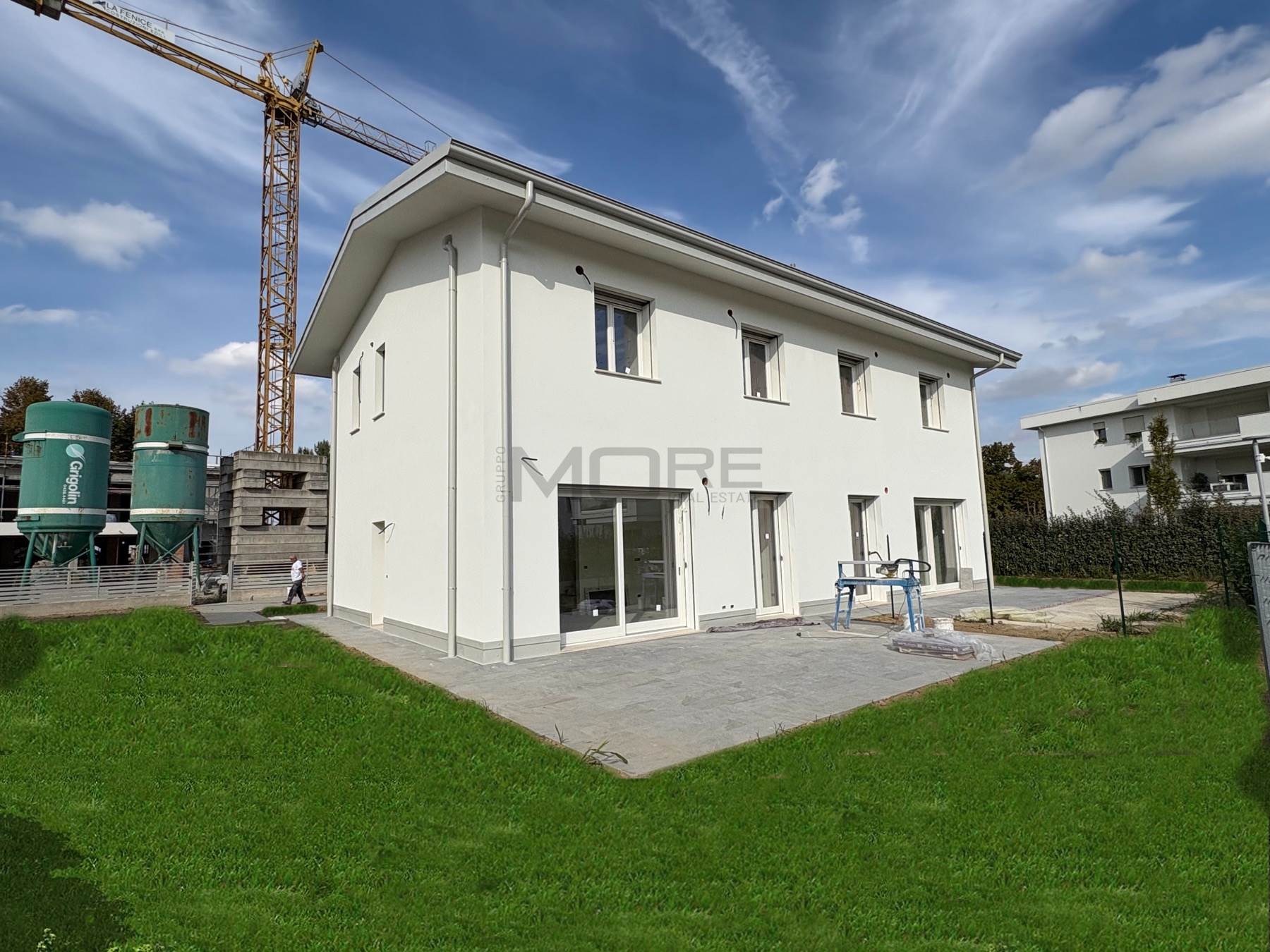 VR7135-7 COGNENTO In esclusivo ed elegante complesso residenziale proponiamo villetta abbinata in fase di realizzazione, classe energetica A4, impianti autonomi di riscaldamento a pavimento, condizionamento, ricambio d'aria e pannelli fotovoltaici. Piano Terra con : ingresso, soggiorno, cucina abitabile, bagno, antibagno, ripostiglio e adiacente ampio garage oltre a giardino privato di 285 mq.; al primo Piano: tre camere (due camere matrimoniali, una camera singola), due bagni, balcone. Consegna autunno 2026. Possibilità personalizzazioni finiture .Classe A4 (Nearly Zero Energy Building