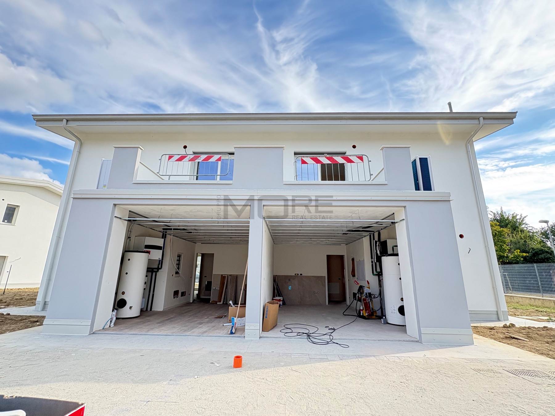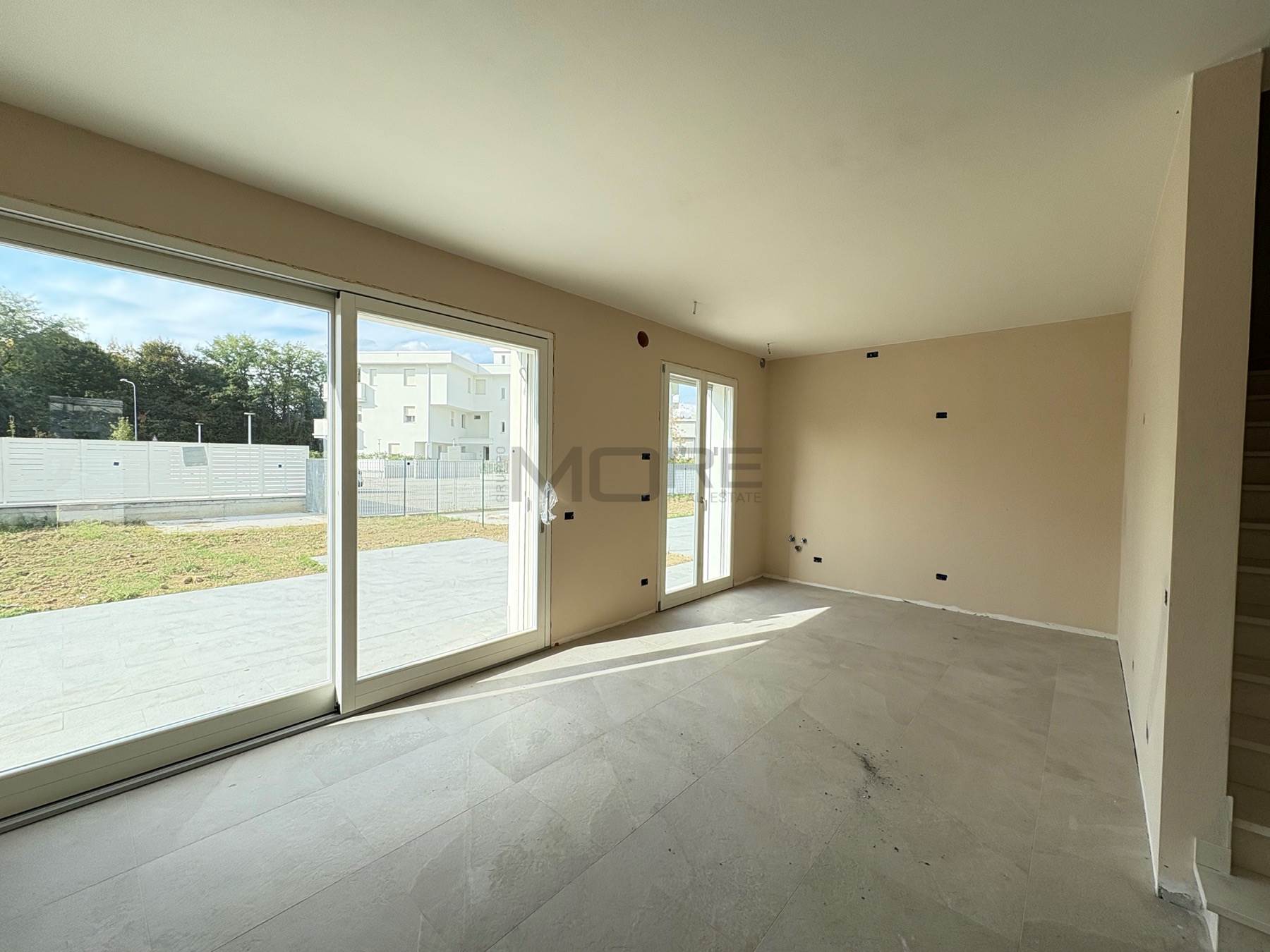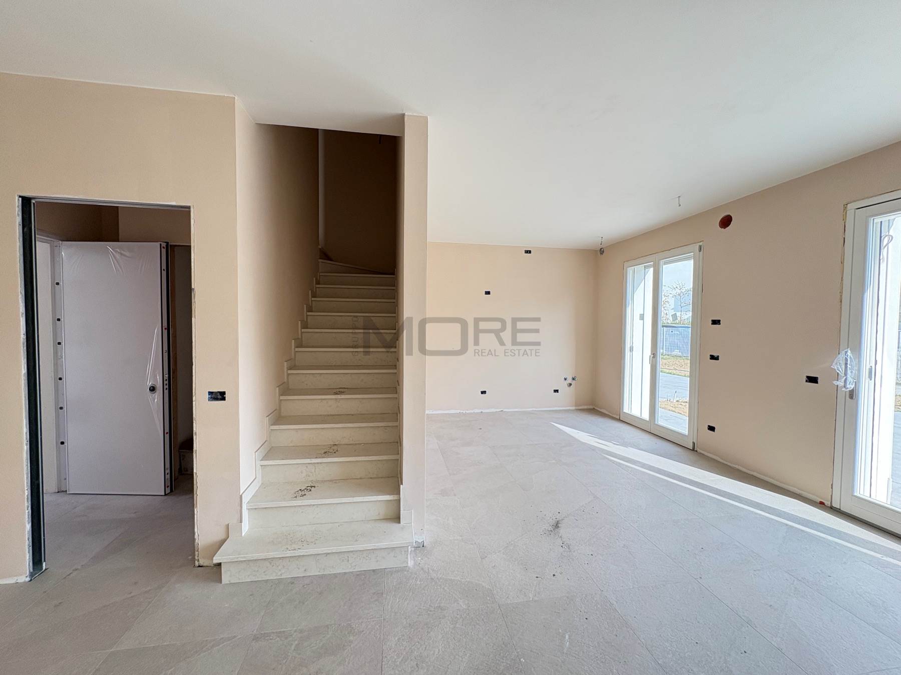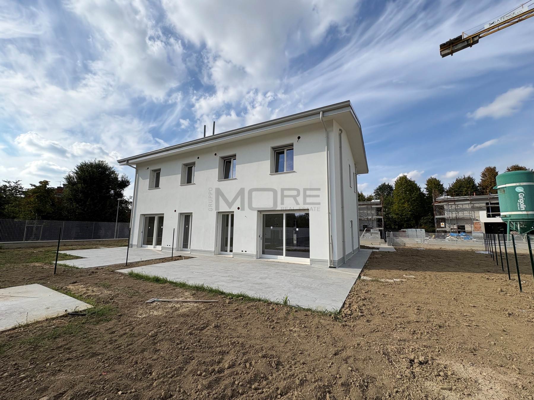VR7135-7 COGNENTO In esclusivo ed elegante complesso residenziale proponiamo villetta abbinata in fase di realizzazione, classe energetica A4, impianti autonomi di riscaldamento a pavimento, condizionamento, ricambio d'aria e pannelli fotovoltaici. Piano Terra con : ingresso, soggiorno, cucina abitabile, bagno, antibagno, ripostiglio e adiacente ampio garage oltre a giardino privato di 285 mq.; al primo Piano: tre camere (due camere matrimoniali, una camera singola), due bagni, balcone. Consegna autunno 2026. Possibilità personalizzazioni finiture .Classe A4 (Nearly Zero Energy Building