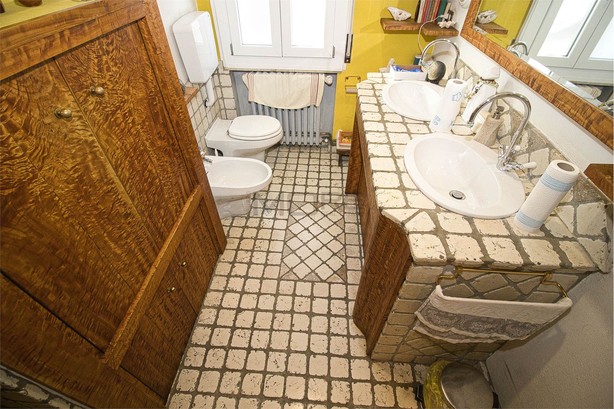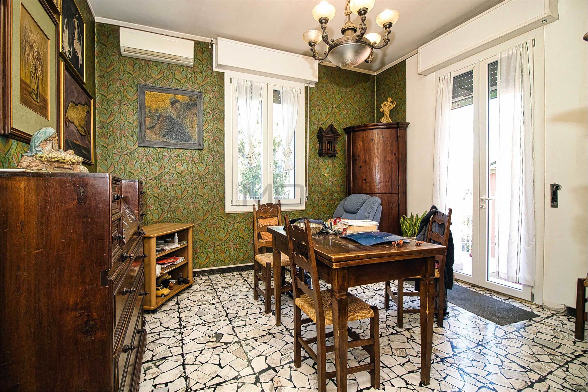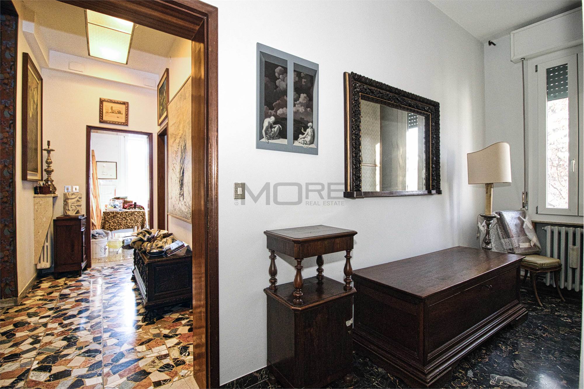 VR7416 Sant'Agnese, in bellissima zona, tranquilla, vicina al centro, in palazzina di sole 3 unità abitative, circondata da ampio giardino vendesi signorile appartamento di ampie dimensioni, da ristrutturare, posto al 3° ed ultimo piano, con ascensore a norma. L'appartamento è composto da: ingresso, salone, tinello con balcone, cucina, studio con balcone, ingresso notte, 3 camere (una con balcone), 2 bagni. Cantina esclusiva e ampia soffitta condominiale con terrazza panoramica. Posto auto coperto e due spazi adibiti a parcheggio, all'interno del giardino. Nell'edificio oltre al cappotto esterno ed ai serramenti nuovi, è stato effettuato il consolidamento sismico, il rifacimento e l'isolamento del tetto e sono stati installati i pannelli fotovoltaici.