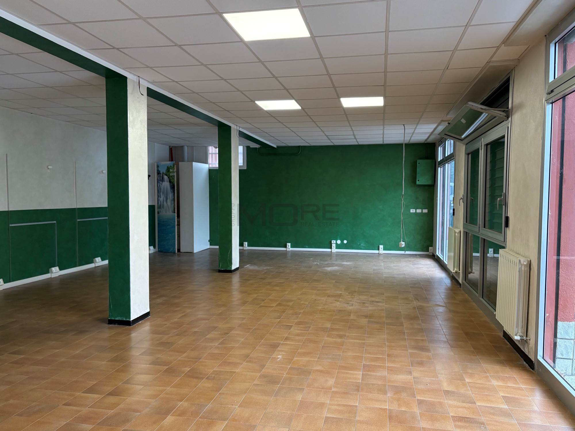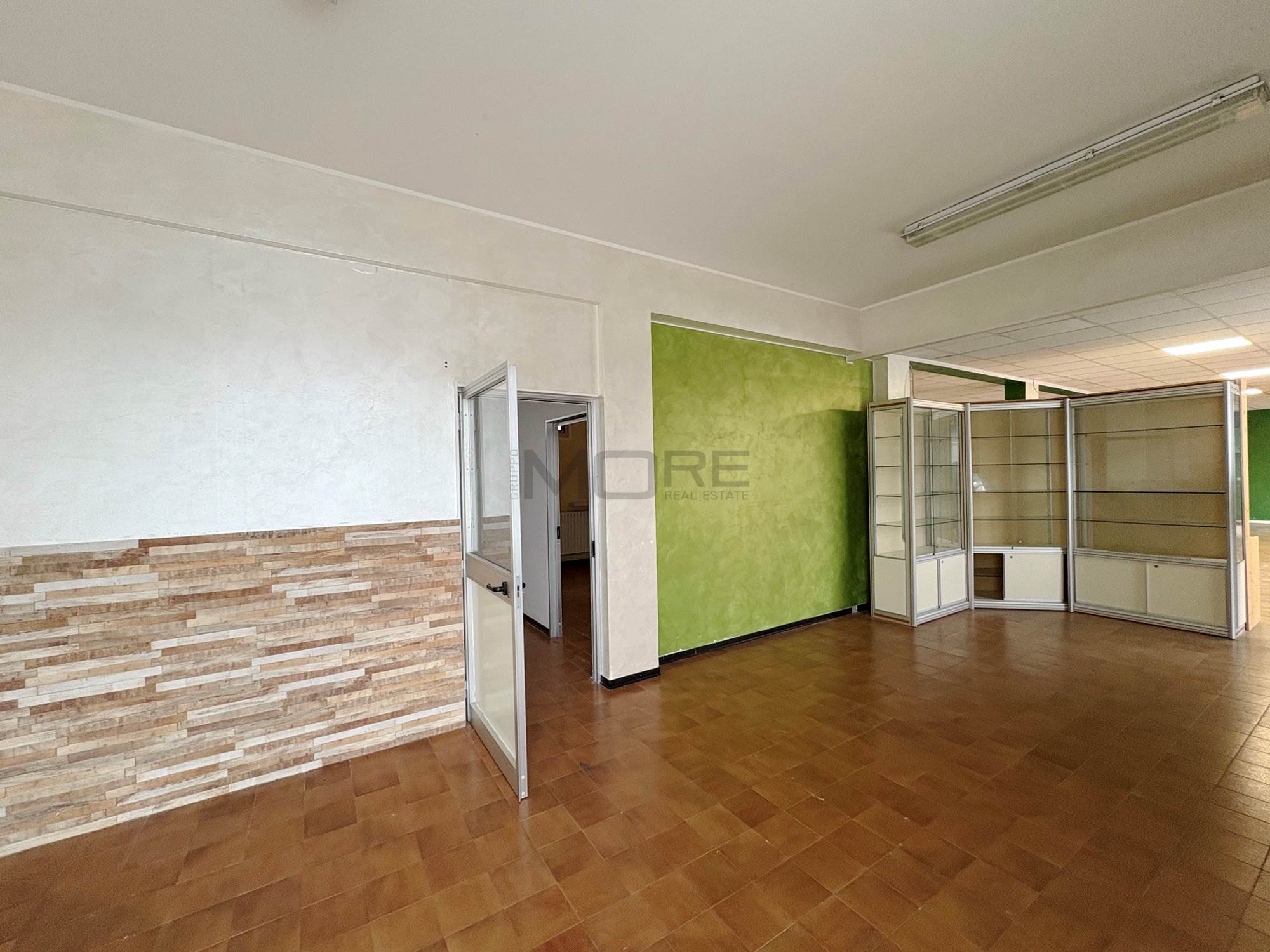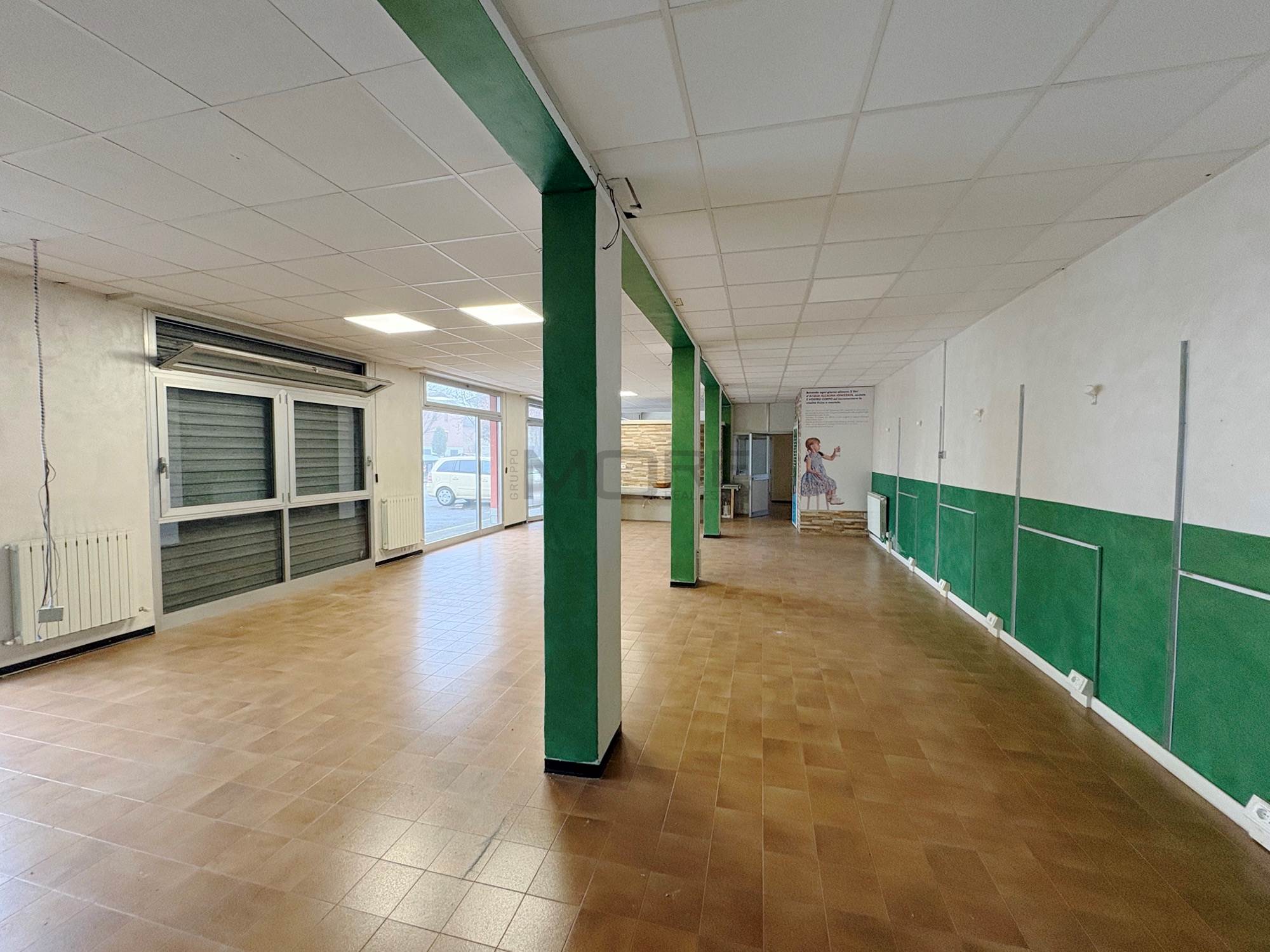 VR7442 Libero negozio/ufficio di 170 mq con 6 vetrine (serrande motorizzate) con parcheggio antistante, ideale per centro estetico, poliambulatorio, parrucchiere. Attualmente sono presenti 2 vani uffici di 15 mq ognuno, doppi servizi con antibagno e i restanti 120 mq sono openspace . Classe VA