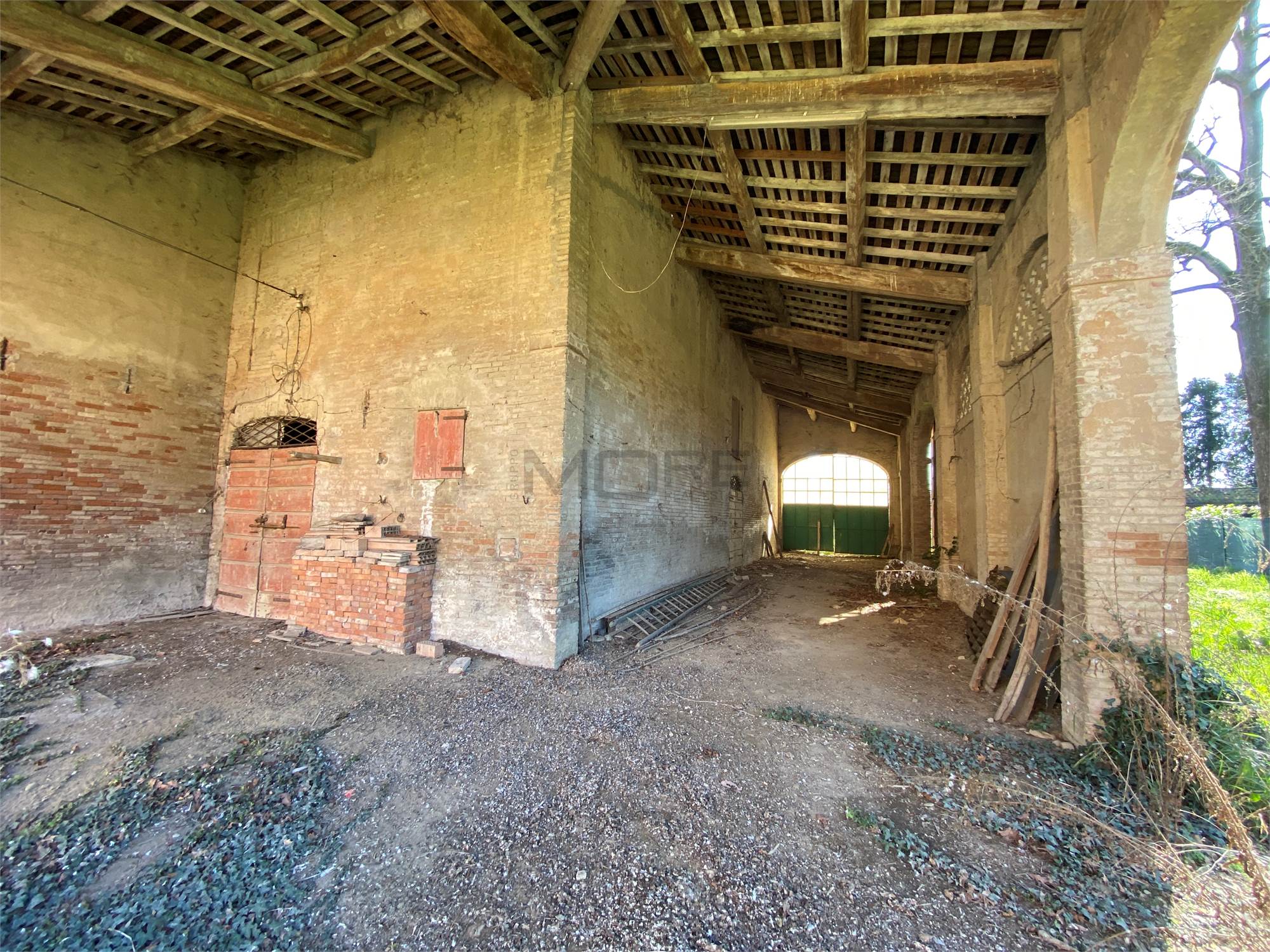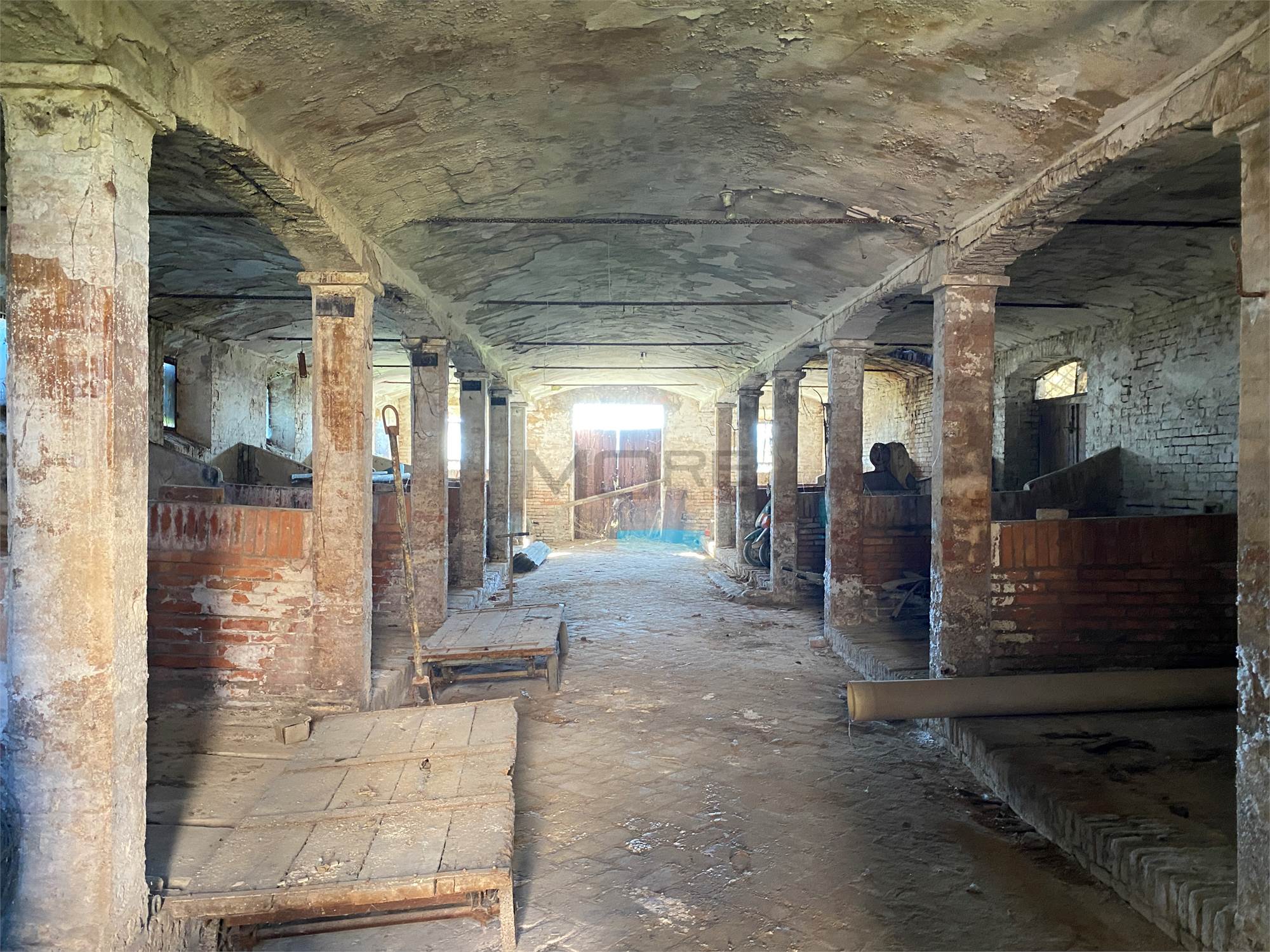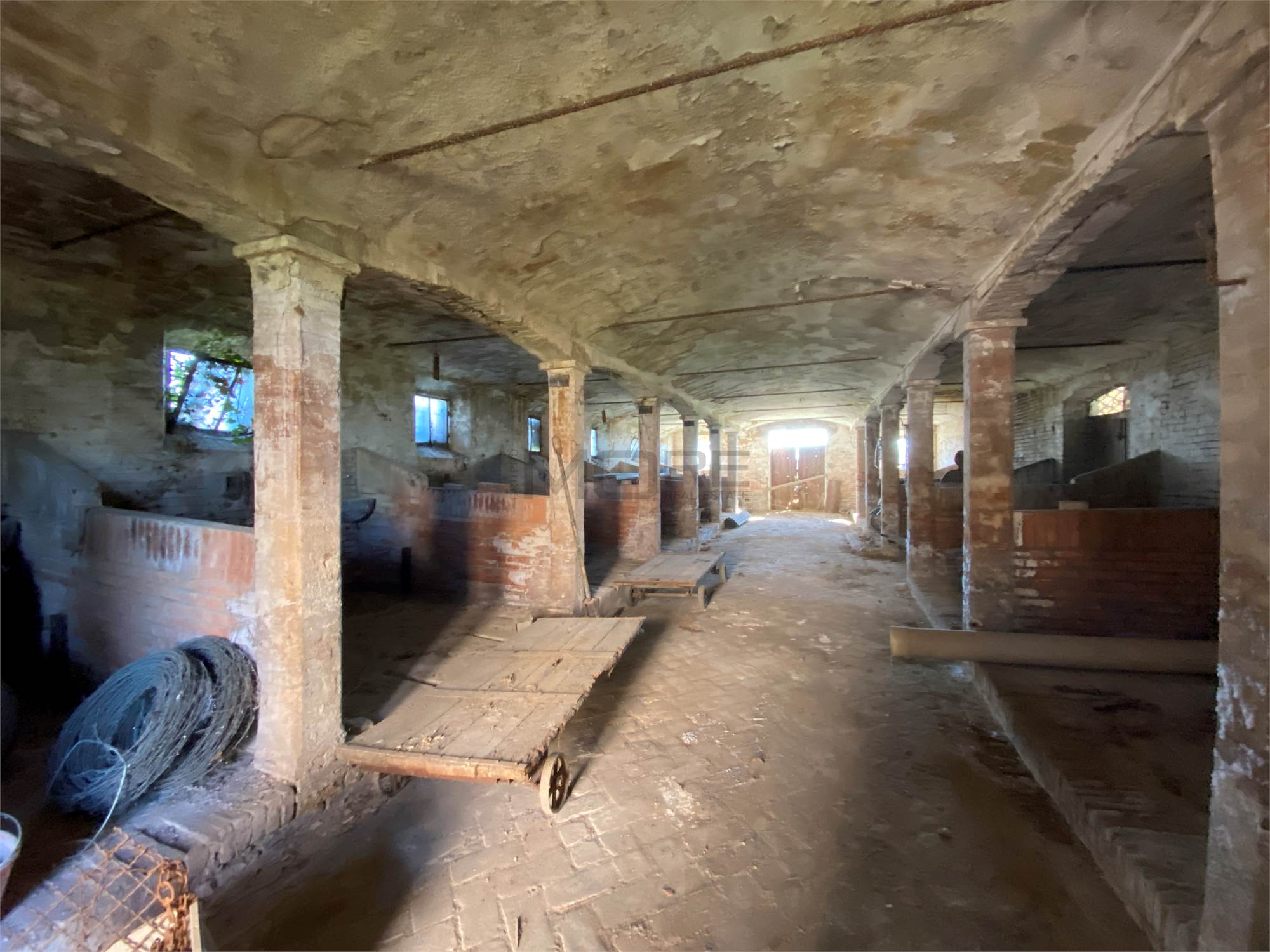 Il secondo edificio, precedentemente adibito a STALLA E FIENILE, ha una superficie totale di circa 570 (200 metri quadri per piano + portico).