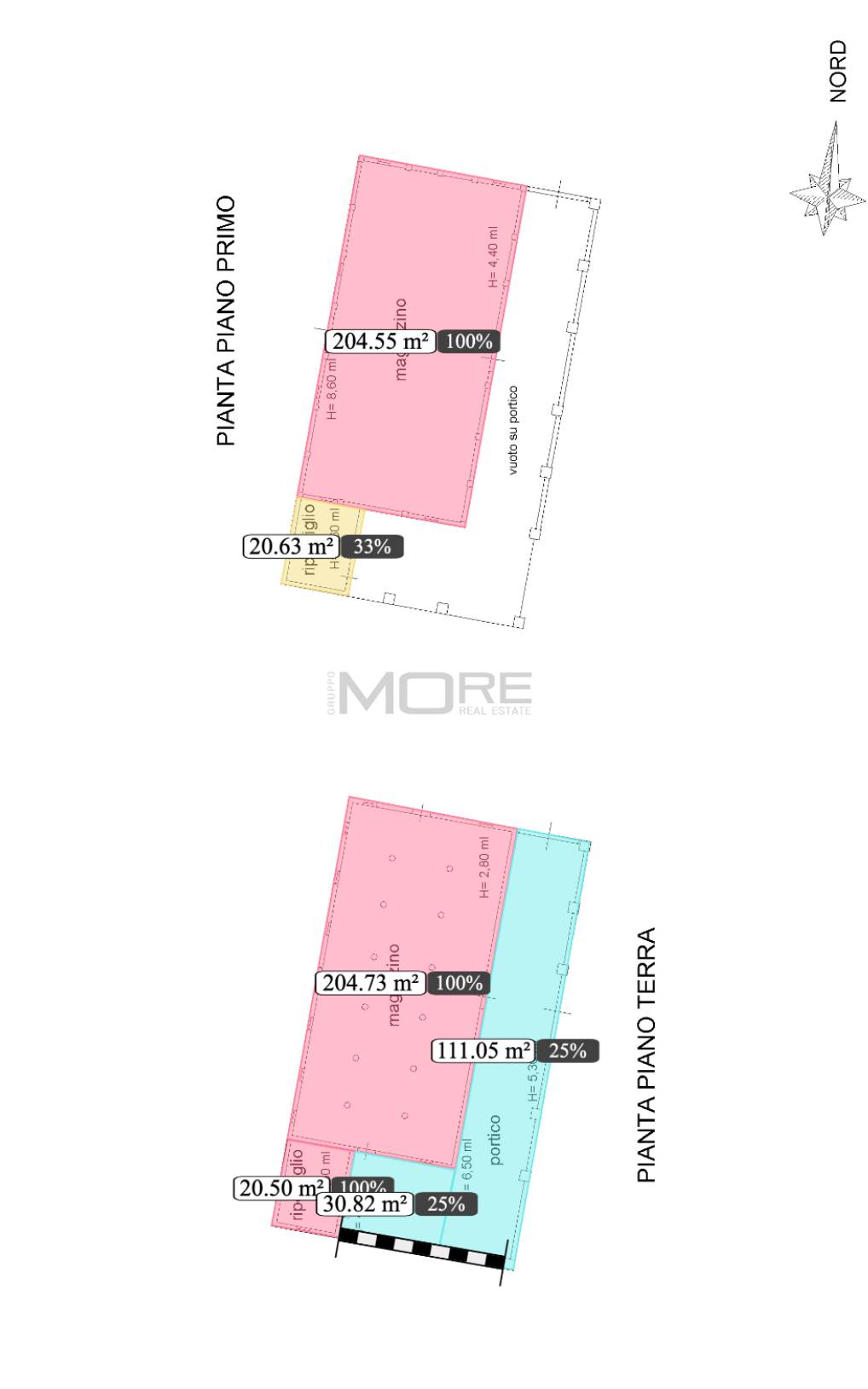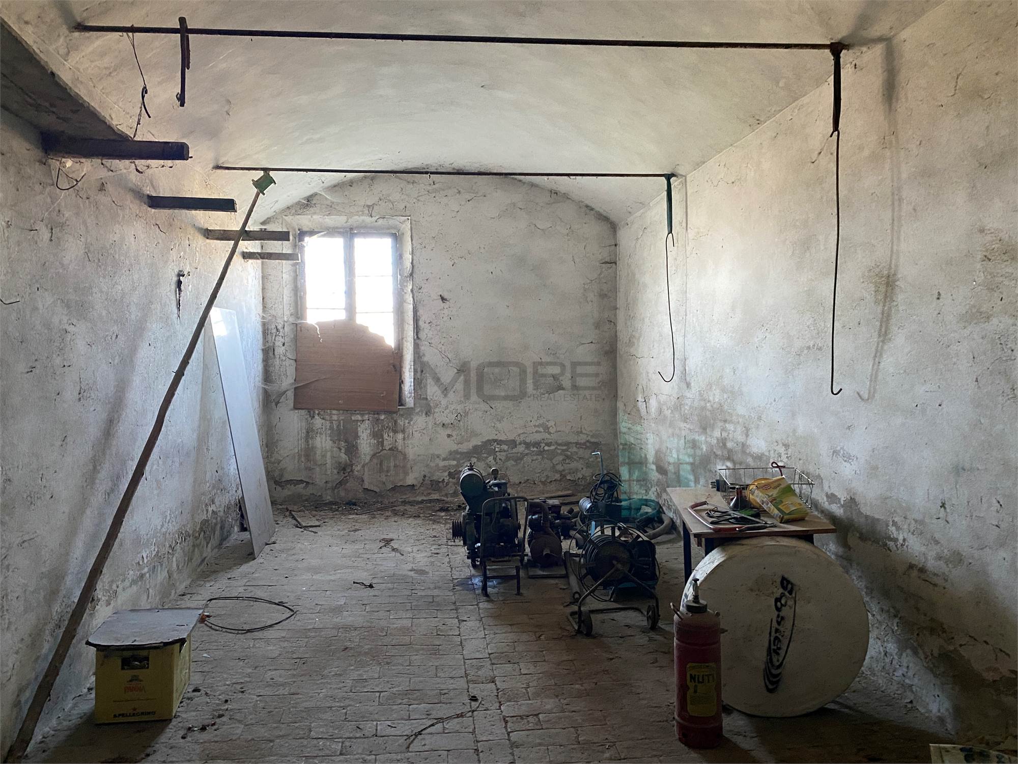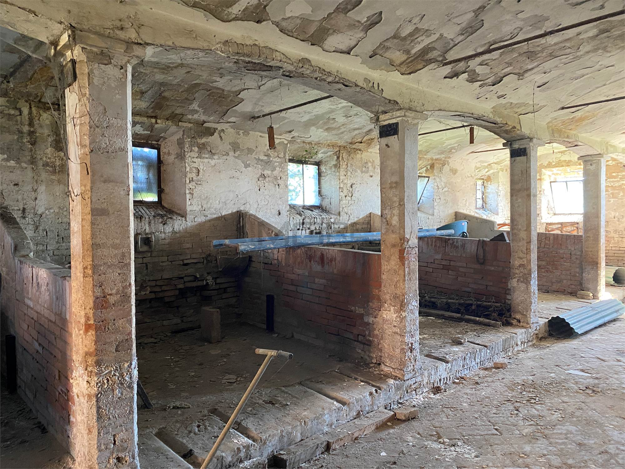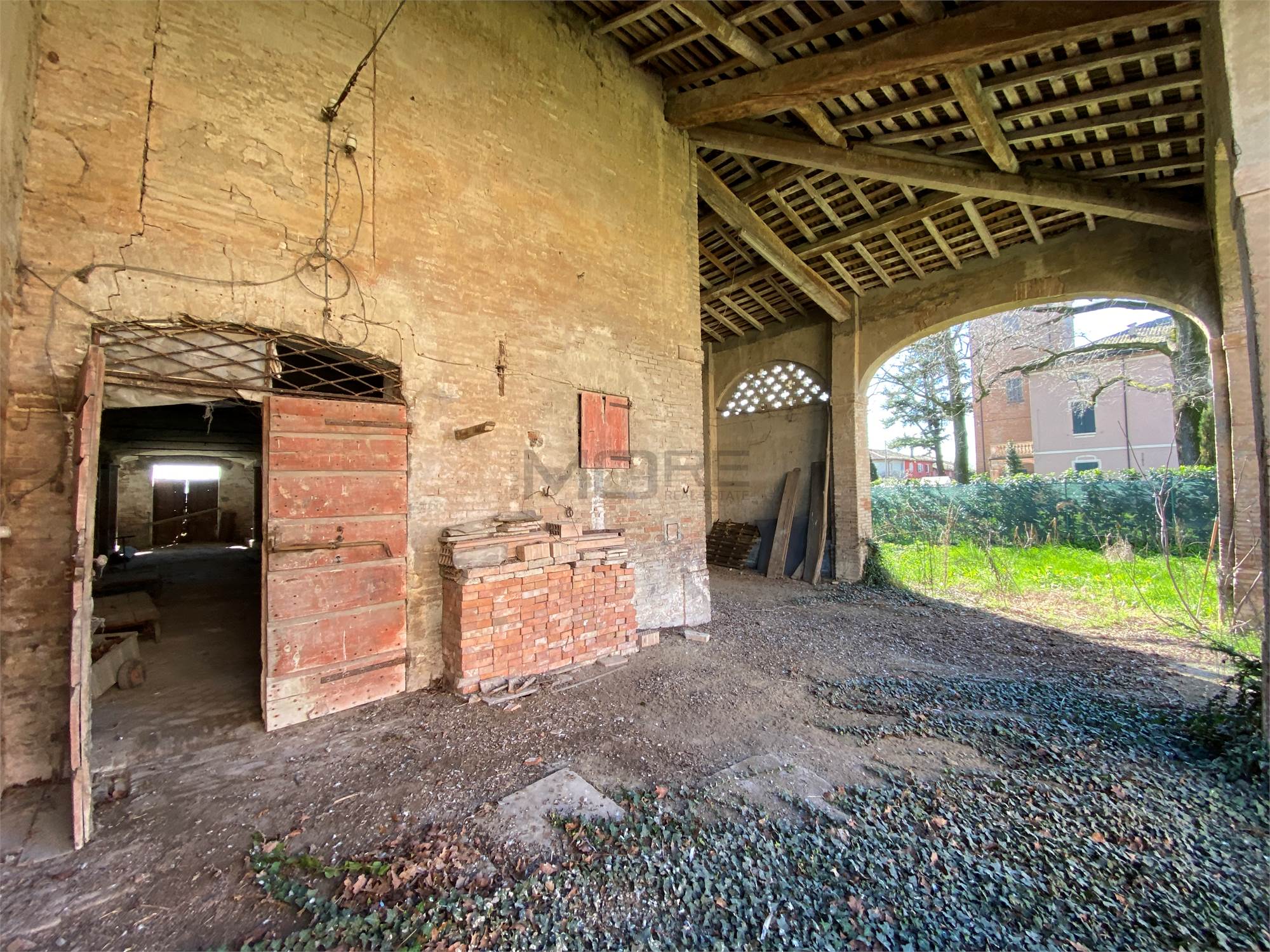 Il secondo edificio, precedentemente adibito a STALLA E FIENILE, ha una superficie totale di circa 570 (200 metri quadri per piano + portico).